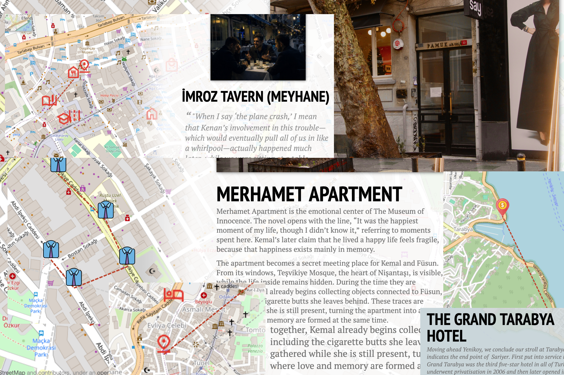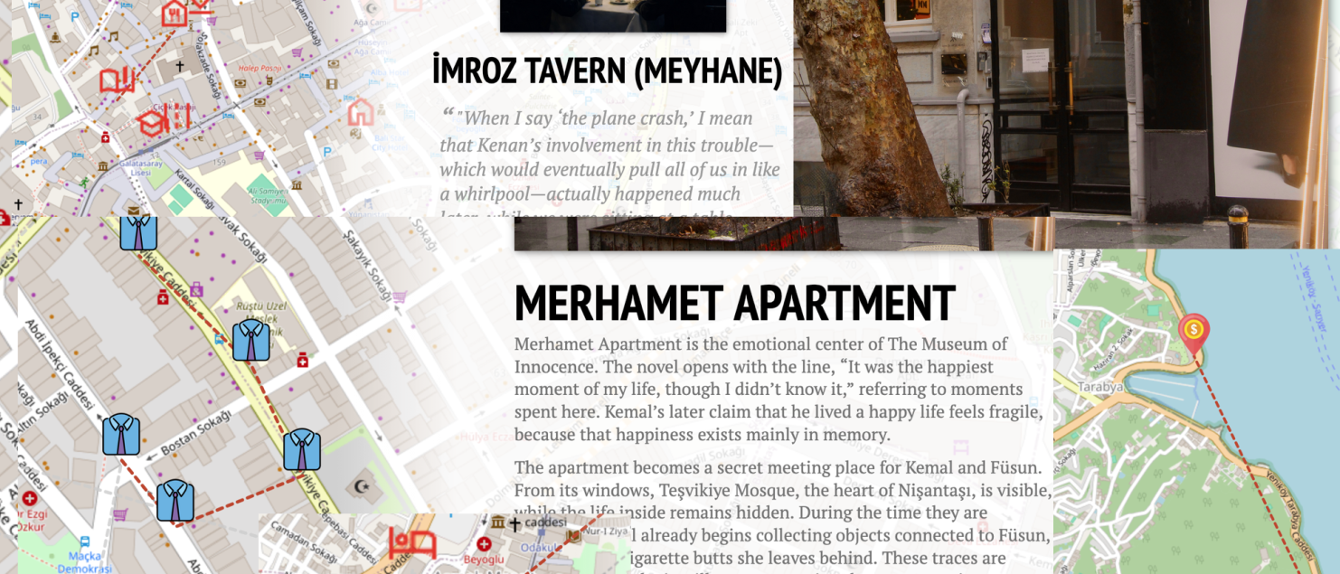 Focusing on Nişantaşı, the project compares two characters from Orhan Pamuk’s novels Masumiyet Müzesi (Kemal) and Kafamda Bir Tuhaflık (Mevlüt). Using Henri Lefebvre’s concept of The Production of Space, the project examines how space is not only designed and planned, but also shaped through memory, daily routines, walking, and emotional experience.